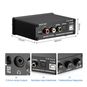 - 🎵 Triple Digital Inputs — USB, Coaxial S/PDIF, and Optical (Toslink) for maximum compatibility