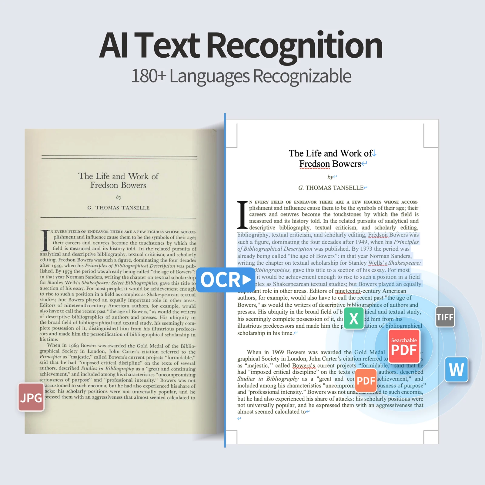 - 🧠 Smart OCR — 180+ Languages — converts scanned pages into editable, searchable text