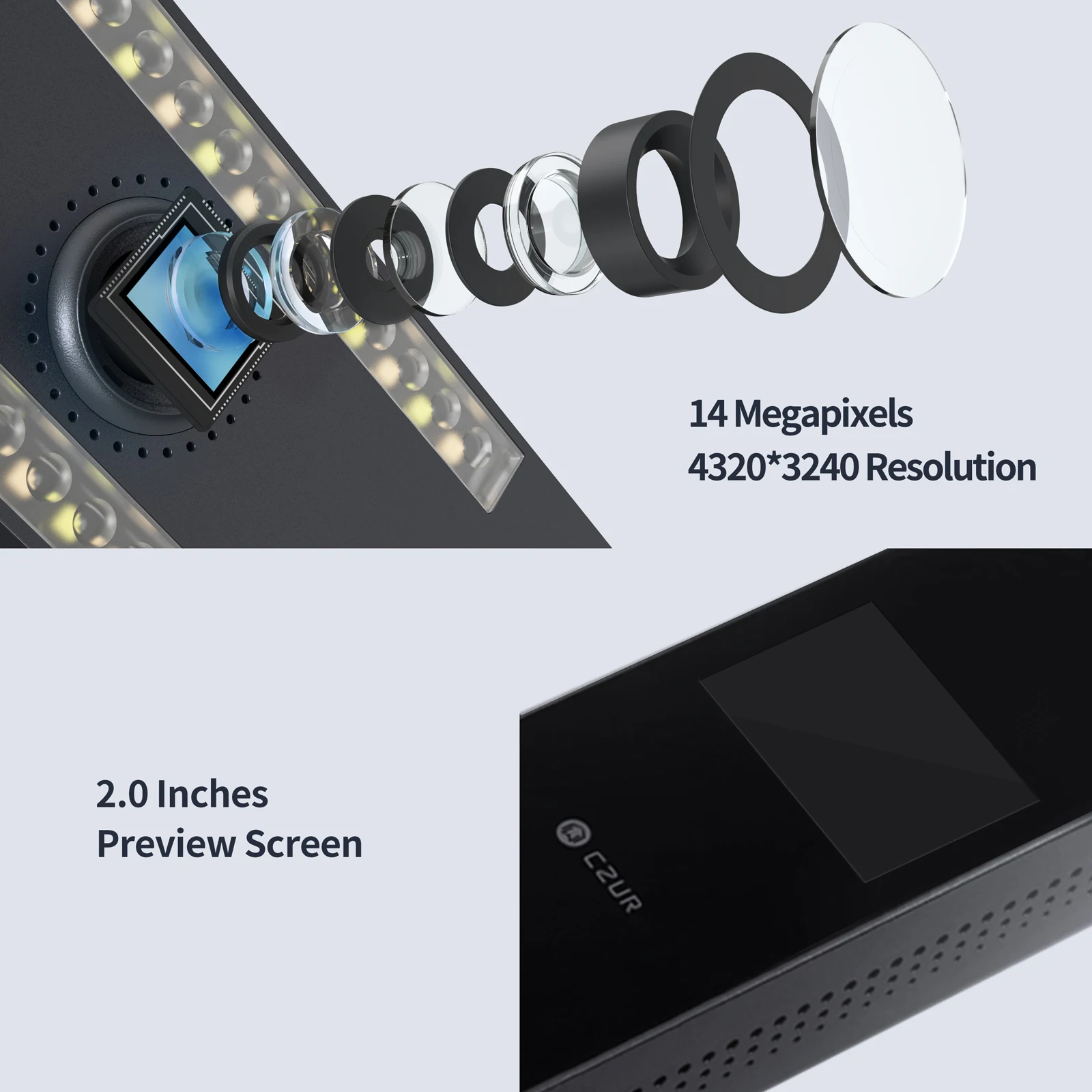 Meet the CZUR Aura Pro — a revolutionary all-in-one portable scanner and LED desk lamp engineered for home offices, libraries, and professionals who demand speed, accuracy, and versatility. With a 14-megapixel CMOS sensor, lightning-fast 2-second scan speed, and Smart OCR support for over 180 languages, the Aura Pro transforms physical documents, books, and magazines into fully searchable digital files in seconds.