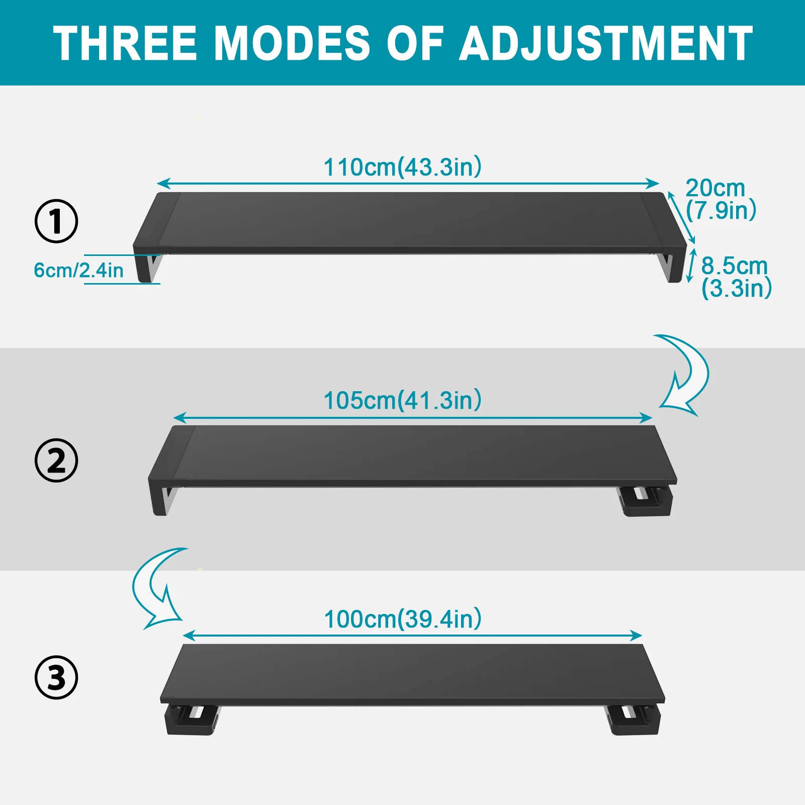 - 📏 Wide 110cm (43.3″) Extended Design — generous surface for a full multi-device setup