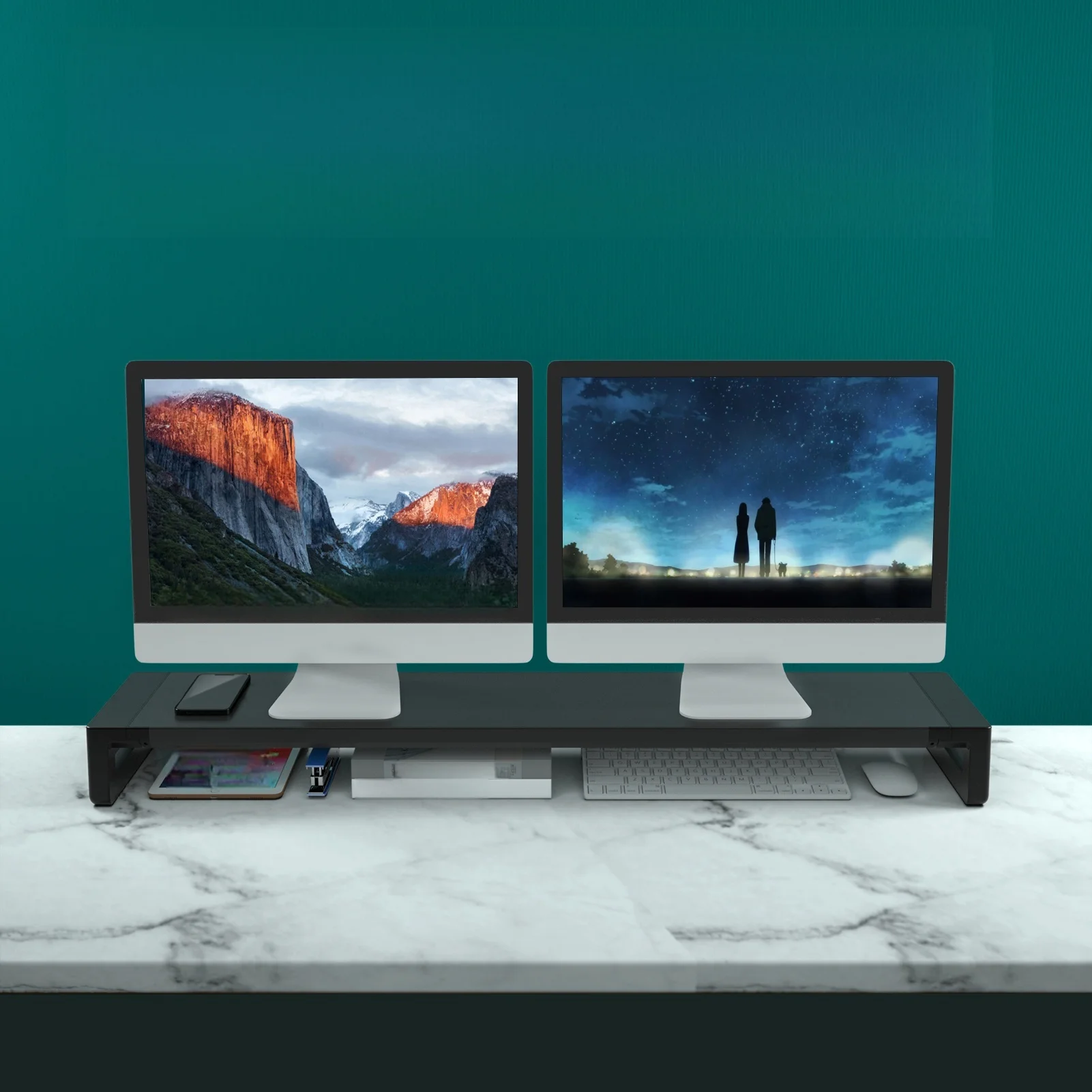 Transform your workspace with the KM100C Dual Monitor Stand Riser — a wide, sturdy, and elegantly designed desktop riser that does it all. Supporting two monitors side by side (or one large curved widescreen), with extra room for a printer, laptop, books, or office accessories, this stand is the ultimate solution for a clean, ergonomic, and highly productive desk setup.