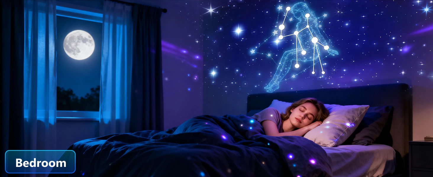 - 🔭 HD Projection Lens — advanced optics for sharp, realistic 3D visuals on walls and ceilings